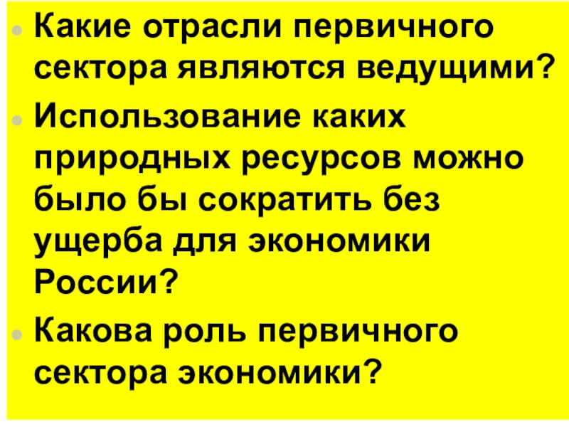 Какие отрасли первичного сектора являются ведущими?Использование каких природных ресурсов можно было бы сократить без ущерба для экономики