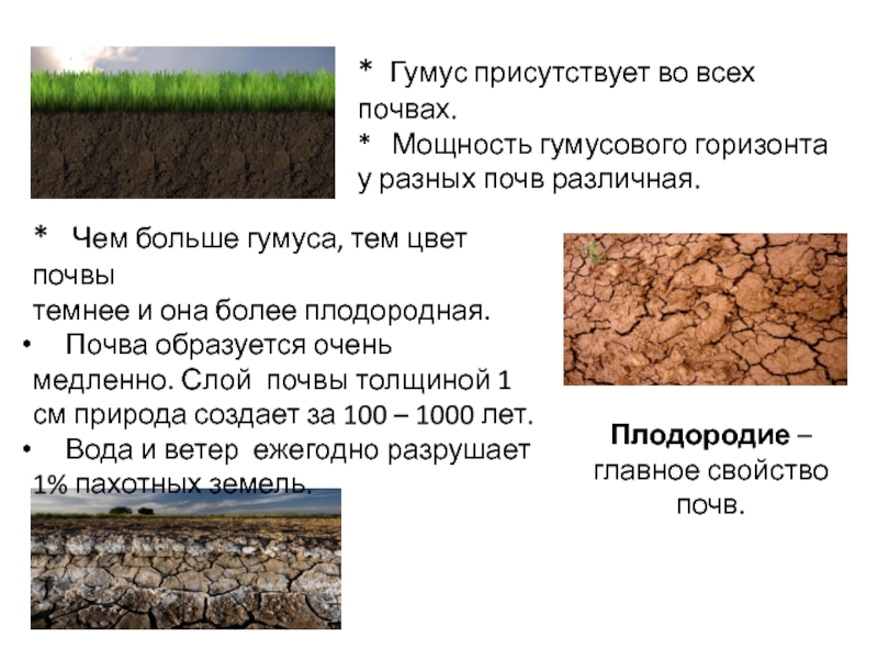 Почва образуется очень медленно. Слой почвы толщиной 1 см природа создает за 100 – 1000 лет.