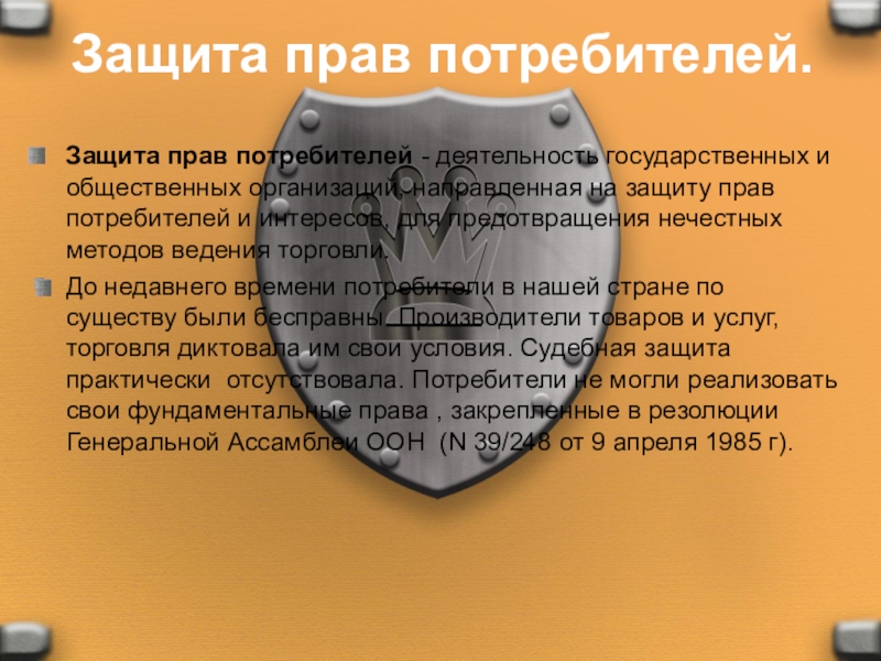 Слайд 3Защита прав потребителей.