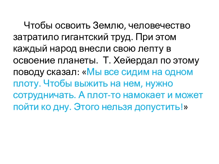 для его настоящего и будущего и требуют для своего решения объединенных усилий всех государств и народов. (Запись в тетрадь)