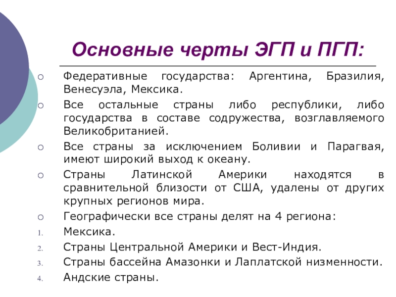 Федеративные государства: Аргентина, Бразилия, Венесуэла, Мексика.
