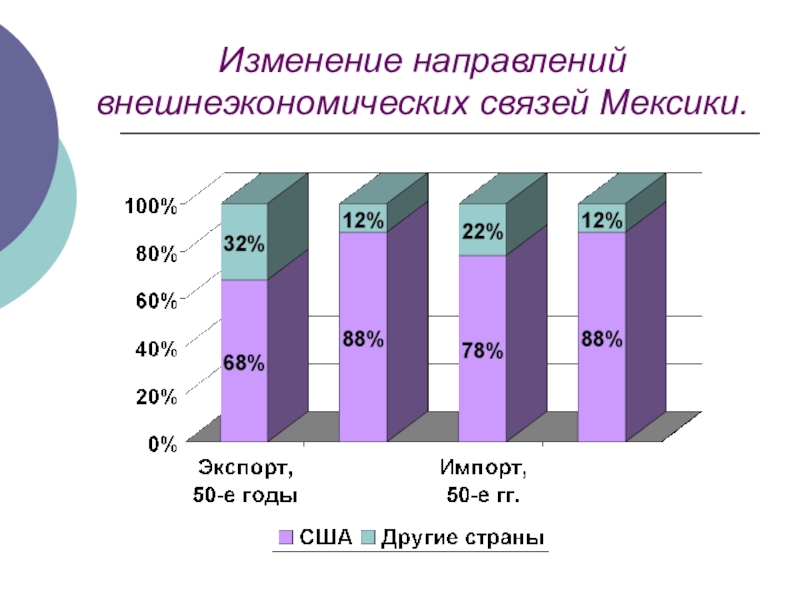 Слайд 24Изменение направлений внешнеэкономических связей Мексики.
