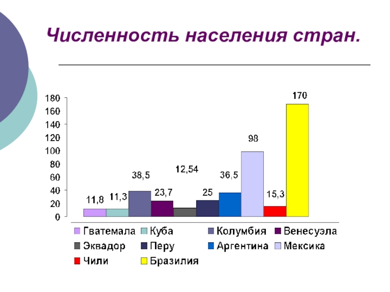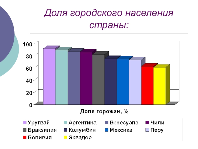 страны, занимающие среднее положение: Венесуэла, Колумбия, Чили, Перу, Уругвай.