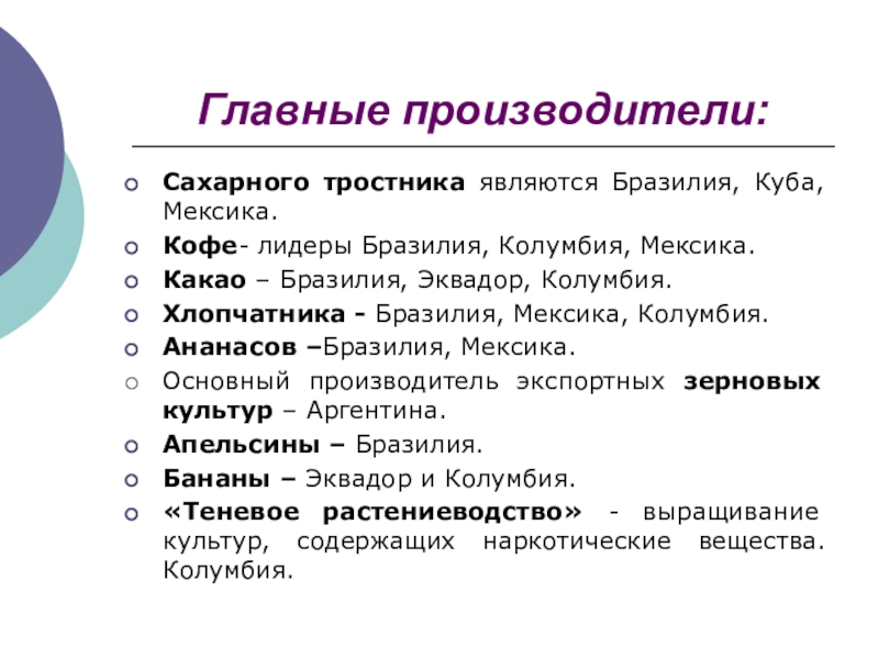 Кофе- лидеры Бразилия, Колумбия, Мексика.