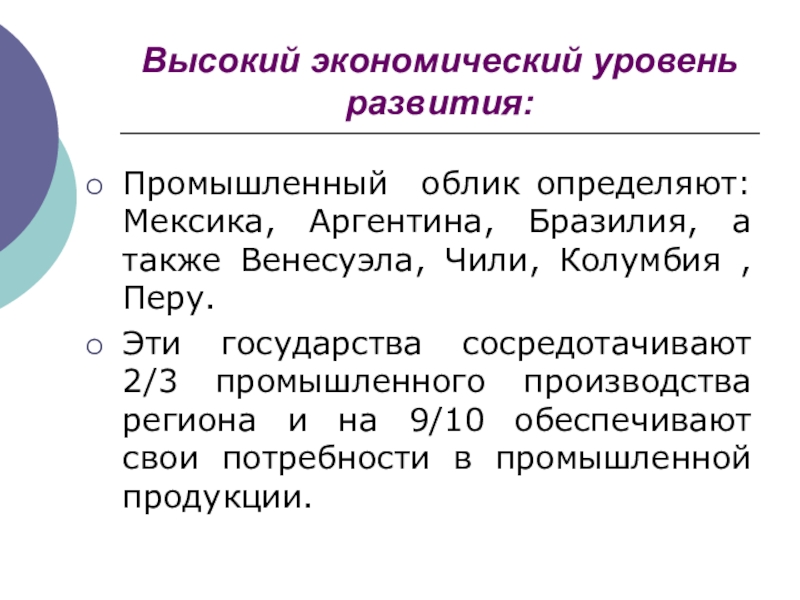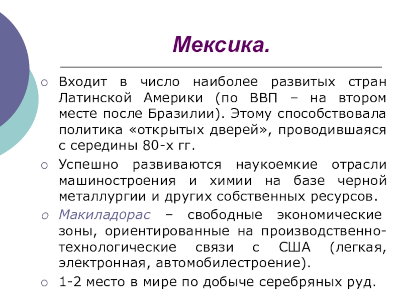 Промышленный облик определяют: Мексика, Аргентина, Бразилия, а также