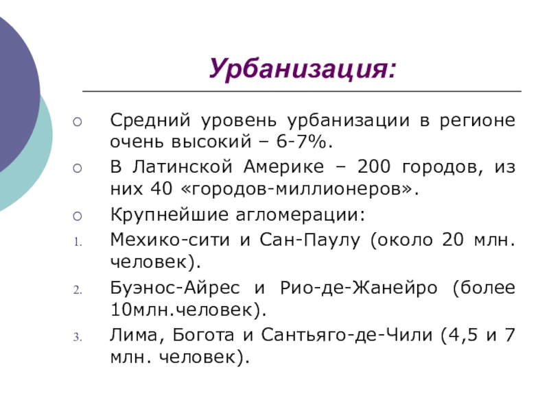 Буэнос-Айрес и Рио-де-Жанейро (более 10млн.человек).