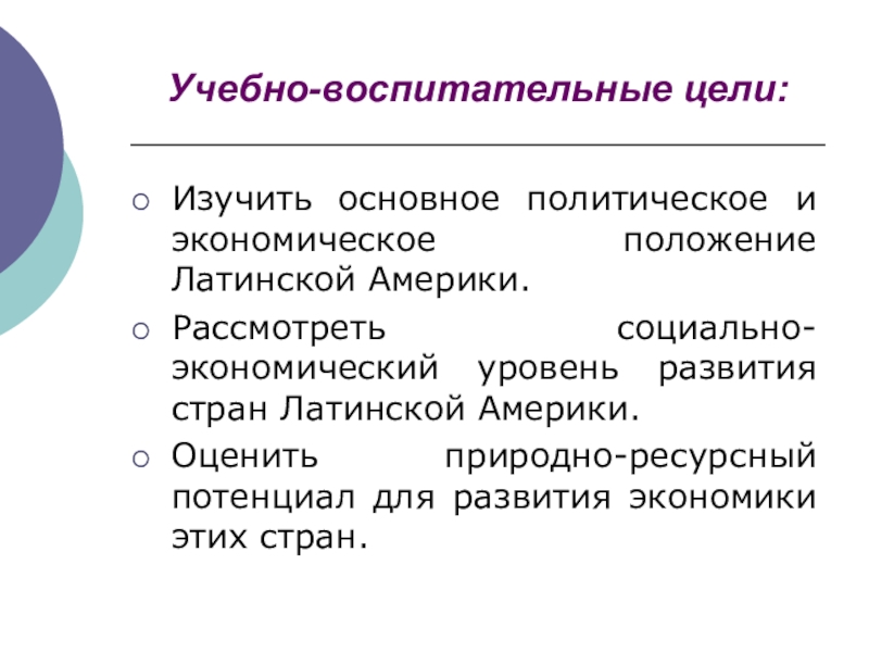 Изучить основное политическое и экономическое положение Латинской Америки.