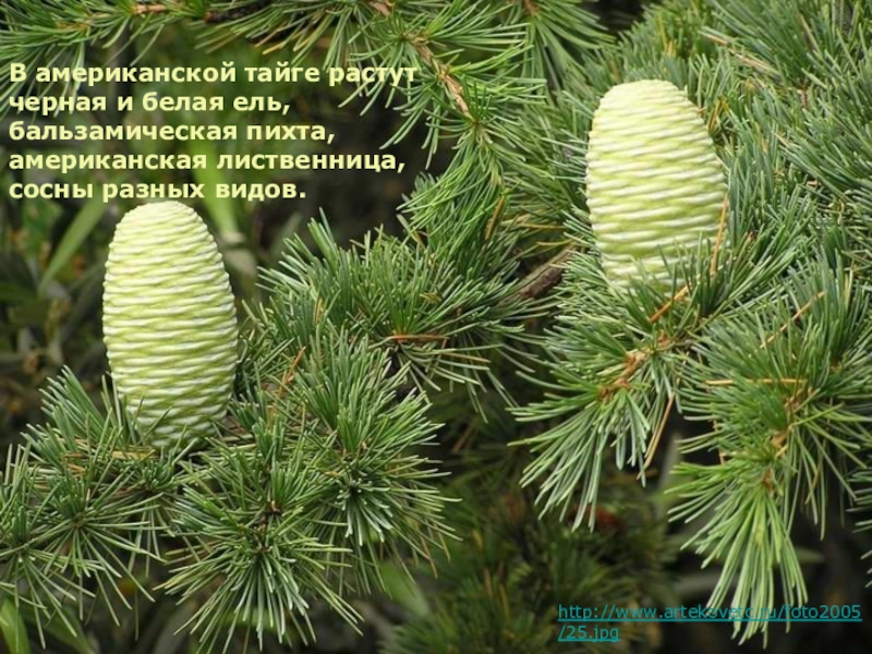 Черная, белая ель, бальзамическая пихта, лиственница,сосна