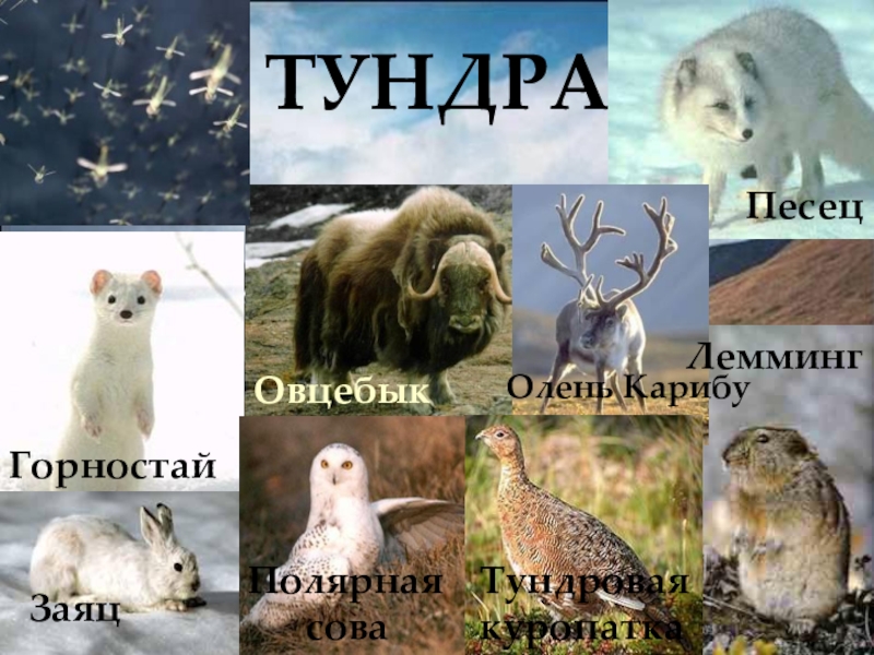 Белый медведь, овцебык,морж, куропатка,северный олень карибу