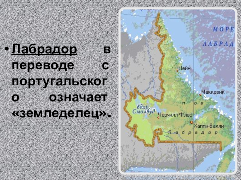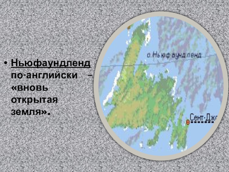 Слайд 7Ньюфаундленд по-английски – «вновь открытая земля».