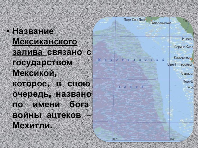Слайд 12Название Мексиканского залива связано с государством Мексикой, которое, в свою очередь,