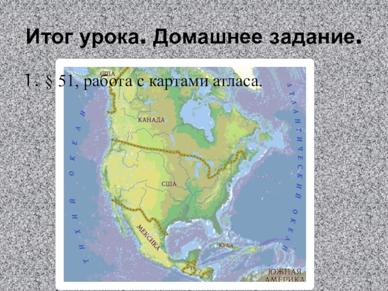 Итог урока. Домашнее задание.1. § 51, работа с картами атласа.