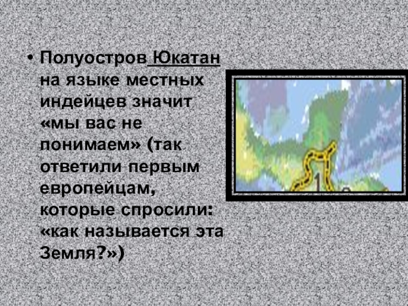 Слайд 9Полуостров Юкатан на языке местных индейцев значит «мы вас не понимаем»
