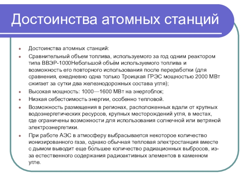 Достоинства атомных станций: