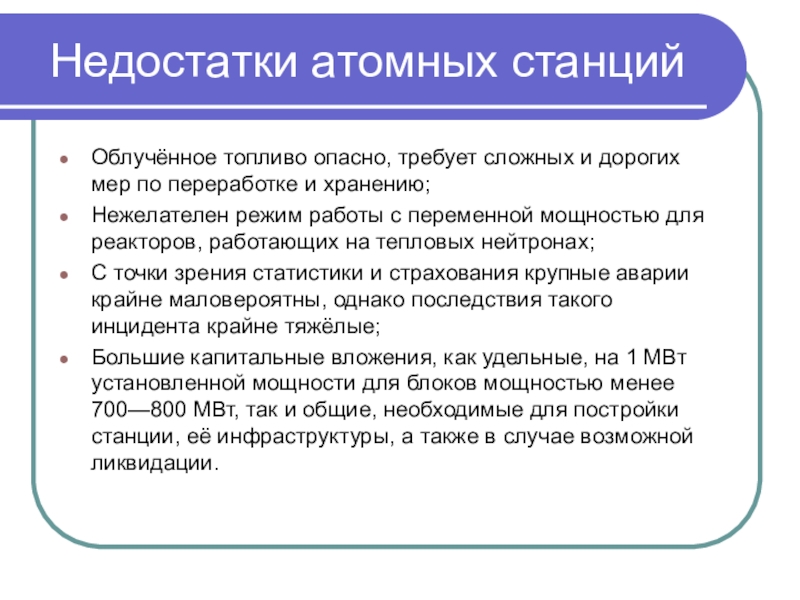 Слайд 10Недостатки атомных станций