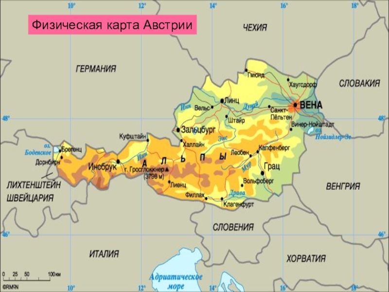 Слайд 9Физическая карта Австрии