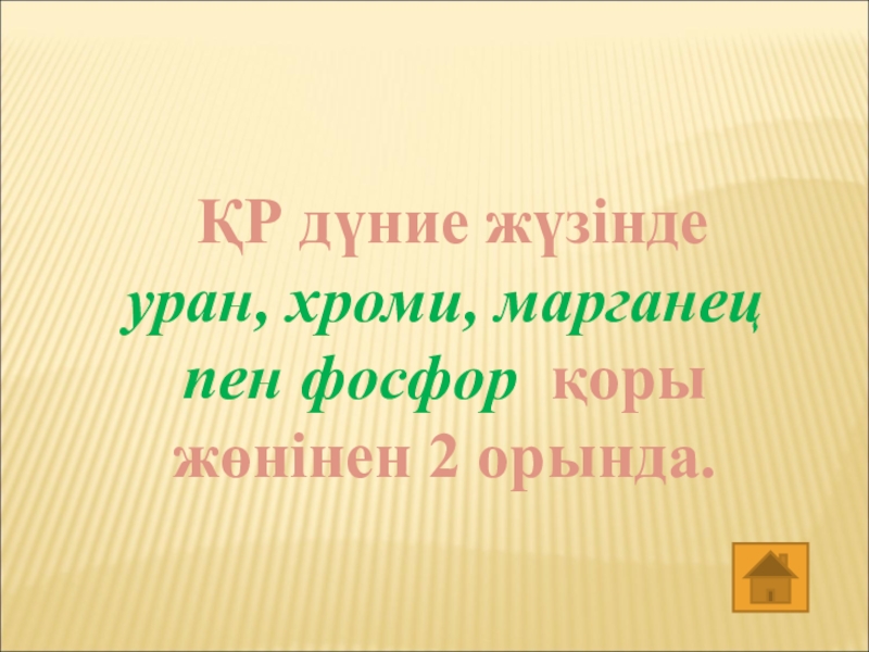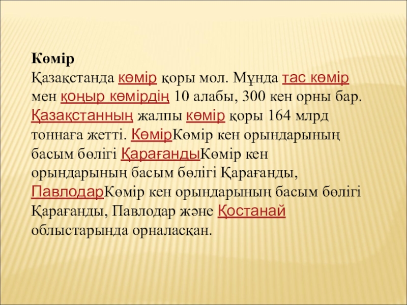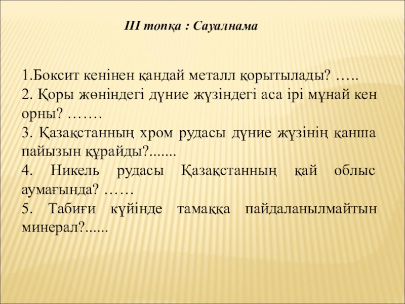 Темір, марганец, хром, никель, алюминий, мыс, полиметалдар, алтын,сирек кездесетін металдар