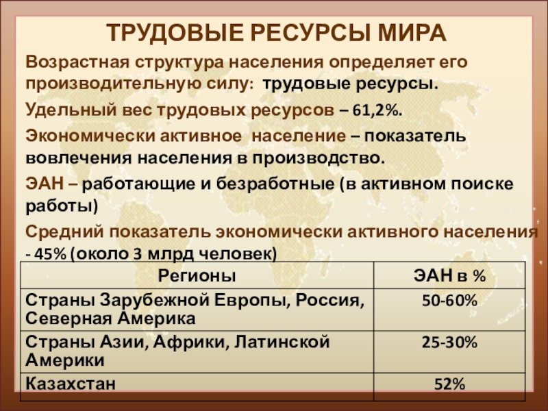 А.Трудовыми ресурсами Б.Экономически активным населением