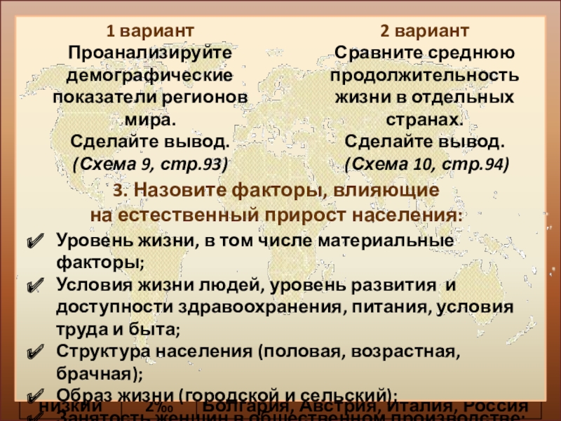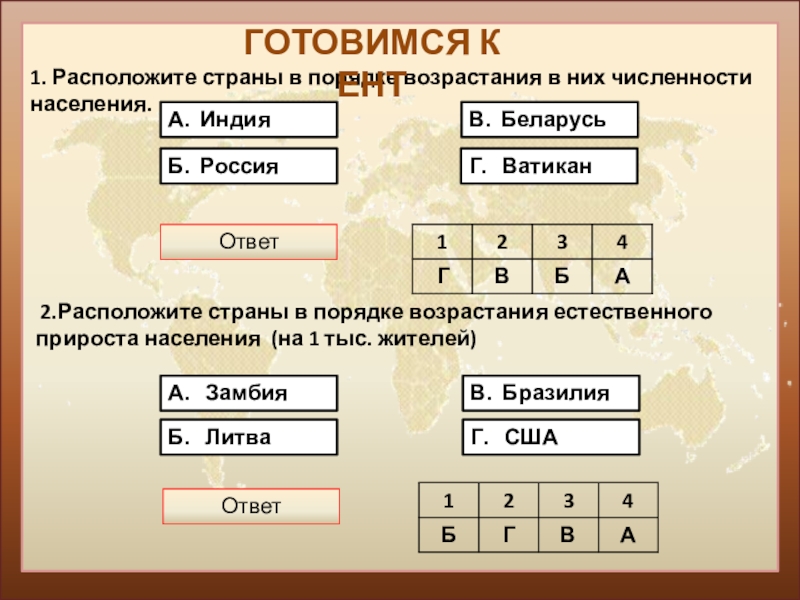 2.Расположите страны в порядке возрастания естественного прироста населения (на 1 тыс. жителей)
