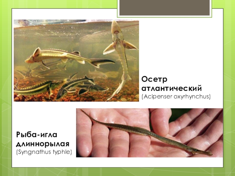 Осетр атлантический (Acipenser oxyrhynchus)Рыба-игла длиннорылая (Syngnathus typhle)