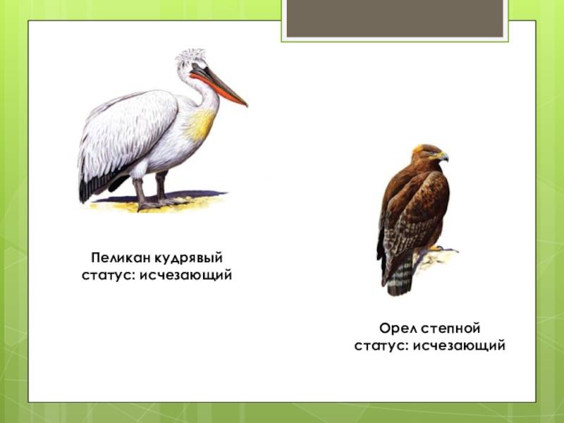 Пеликан кудрявыйстатус: исчезающийОрел степнойстатус: исчезающий