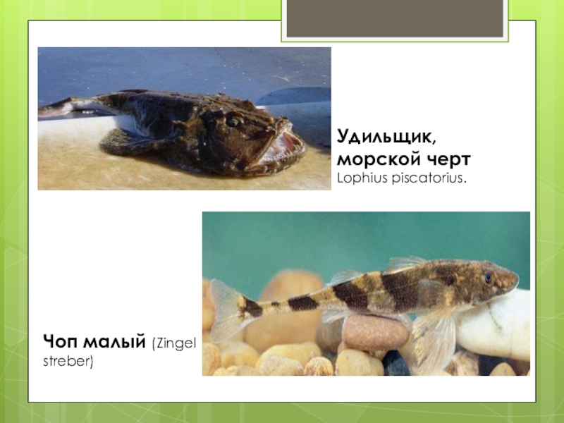 Удильщик, морской черт Lophius piscatorius.Чоп малый (Zingel streber)