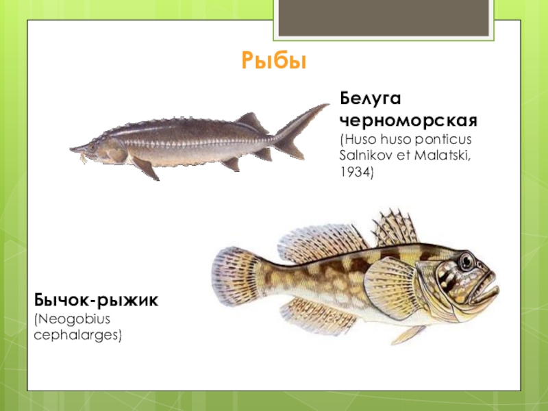 Белуга черноморская (Huso huso ponticus Salnikov et Malatski, 1934)Бычок-рыжик (Neogobius cephalarges)Рыбы