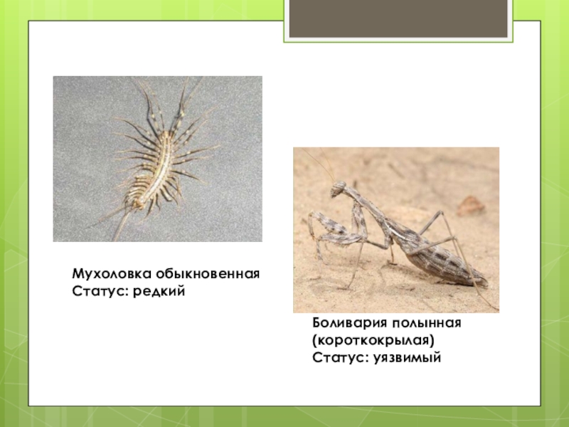 Мухоловка обыкновеннаяСтатус: редкийБоливария полынная (короткокрылая)Статус: уязвимый