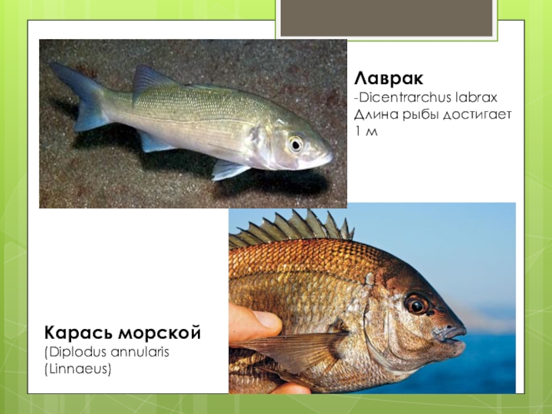 Карась морской (Diplodus annularis (Linnaeus)Лаврак -Dicentrarchus labrax Длина рыбы достигает 1 м