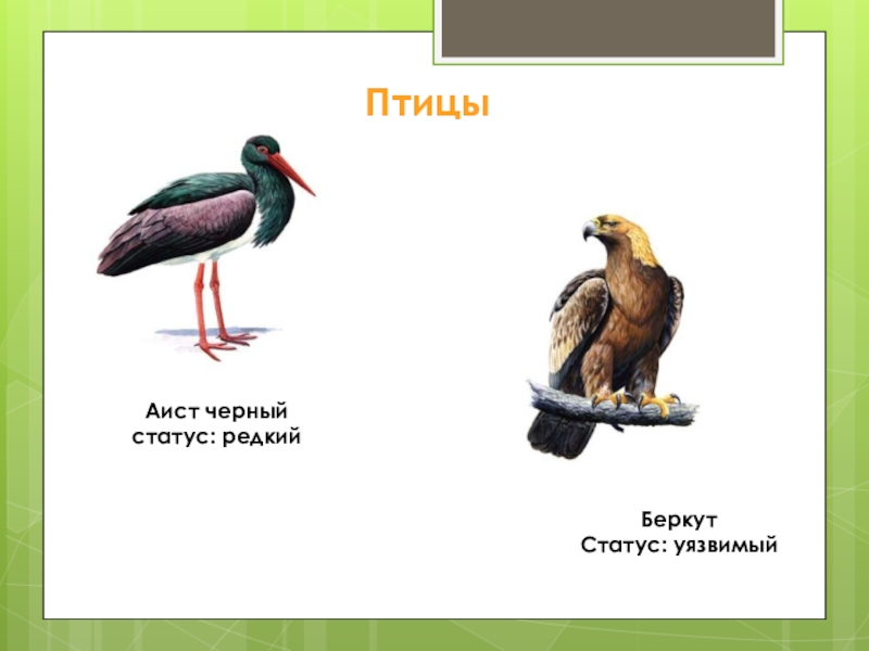 ПтицыАист черныйстатус: редкийБеркутСтатус: уязвимый