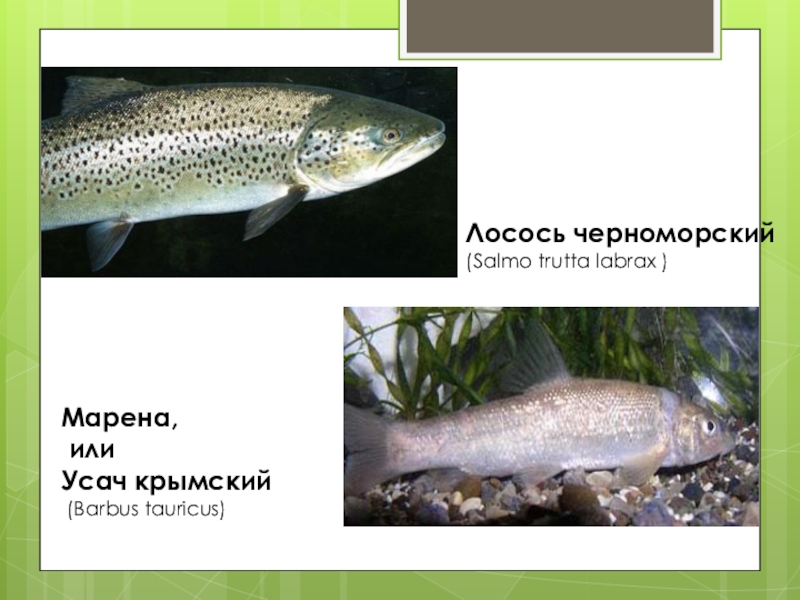 Лосось черноморский (Salmo trutta labrax )Марена, или Усач крымский (Barbus tauricus)