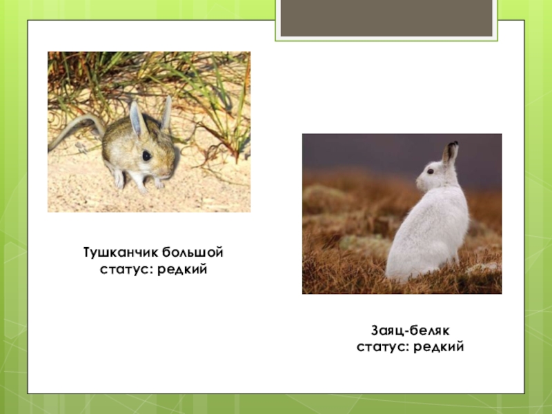Тушканчик большойстатус: редкийЗаяц-белякстатус: редкий