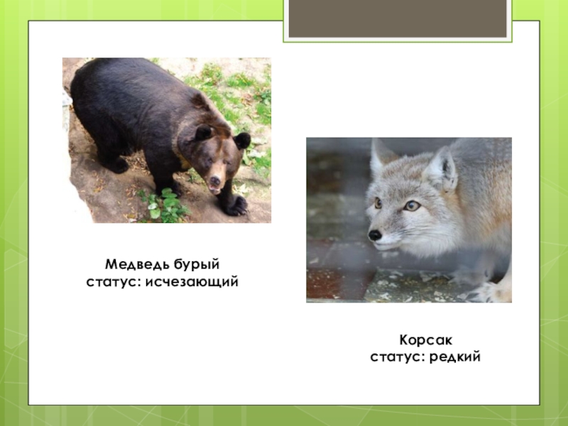 Медведь бурыйстатус: исчезающийКорсакстатус: редкий