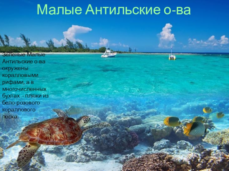 Малые Антильские о-ваЗеленые Малые Антильские о-ва окружены коралловыми рифами, а в многочисленных бухтах - пляжи из бело-розового