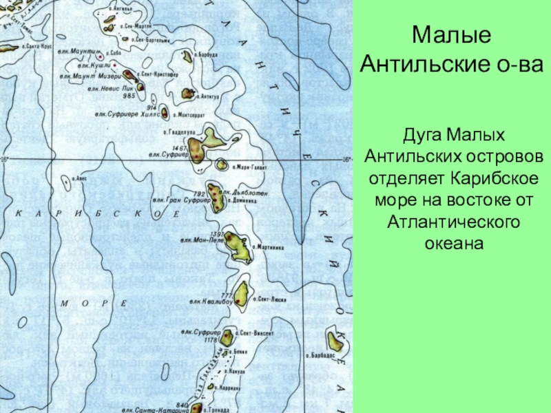 Малые Антильские о-ваДуга Малых Антильских островов отделяет Карибское море на востоке от Атлантического океана