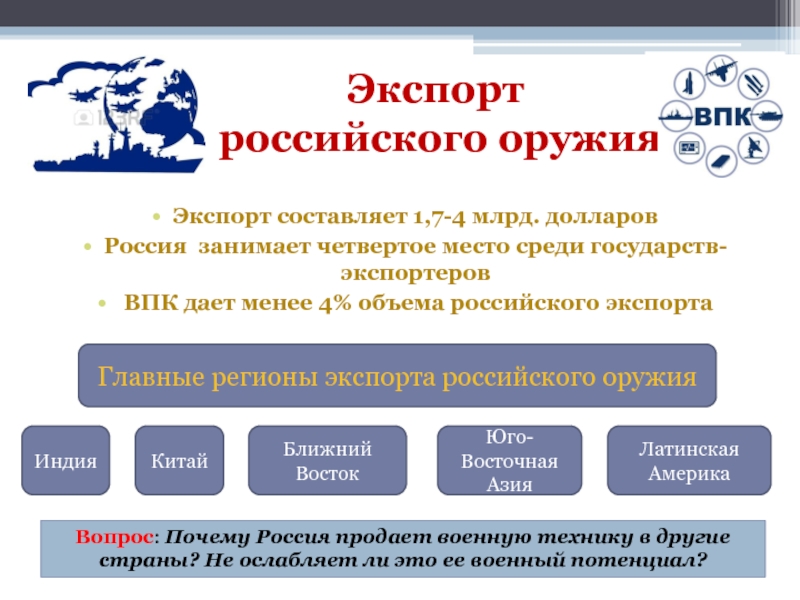 Вопрос: Почему Россия продает военную технику в другие страны? Не ослабляет ли это ее военный потенциал?