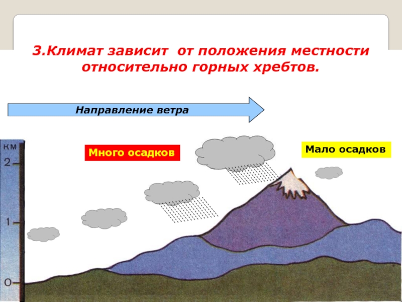 3.Климат зависит от положения местности относительно горных хребтов.