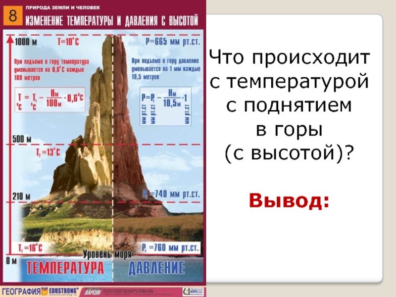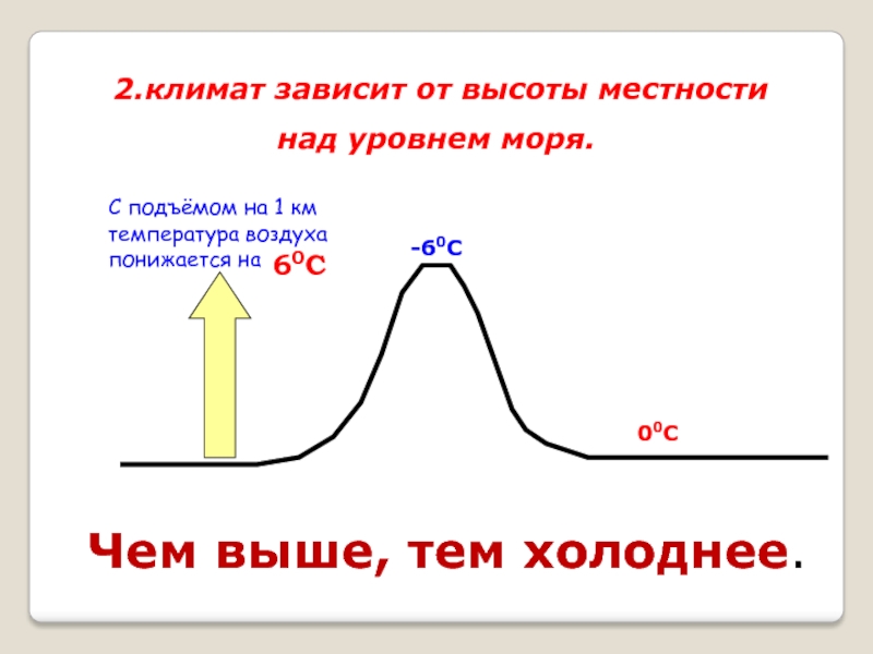 Слайд 26С подъёмом на 1 км температура воздуха понижается на