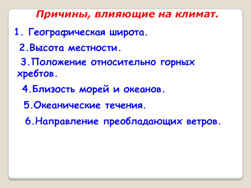 Слайд 34Причины, влияющие на климат.