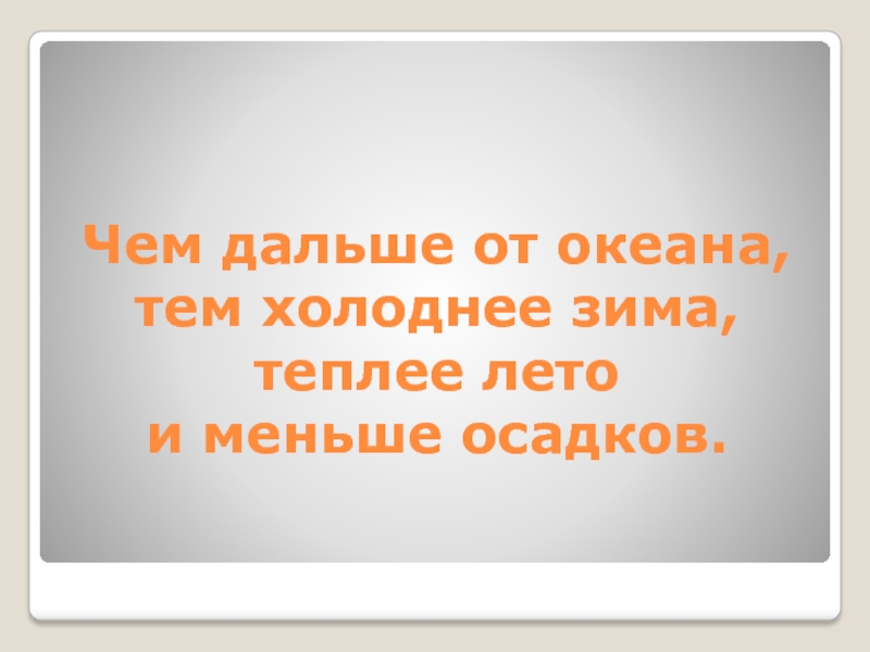 Слайд 29Чем дальше от океана,
