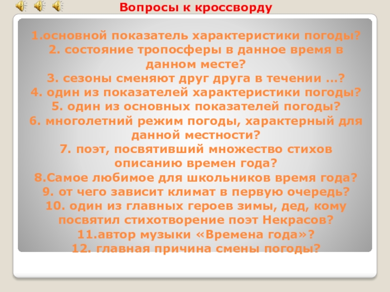 Слайд 36Вопросы к кроссворду