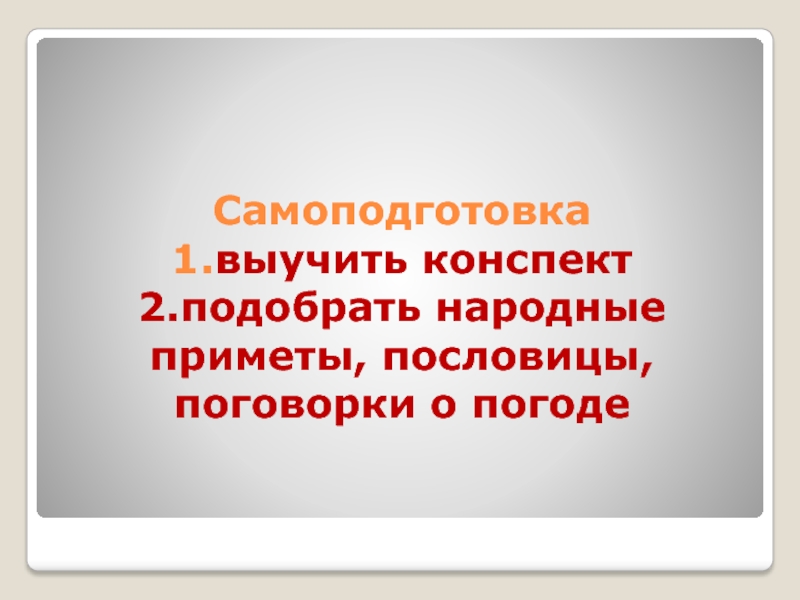 2.подобрать народные приметы, пословицы, поговорки о погоде