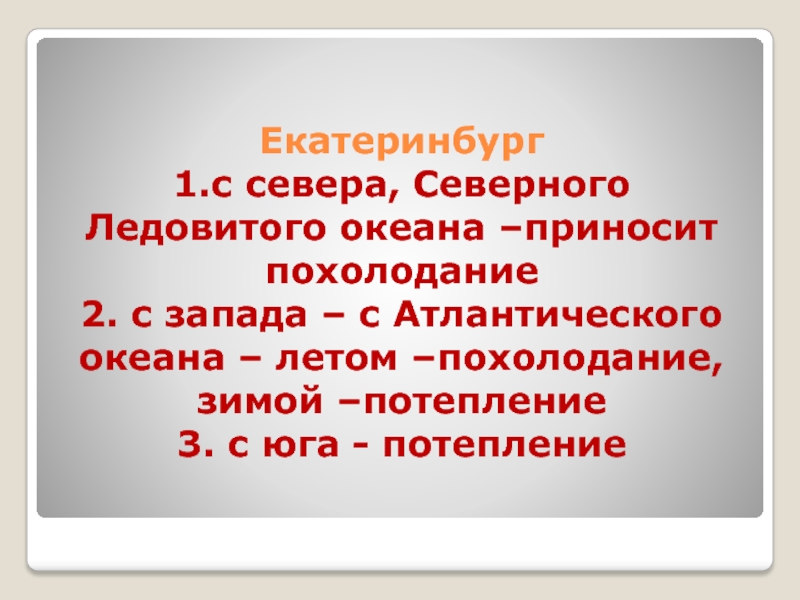 1.с севера, Северного Ледовитого океана –приносит похолодание
