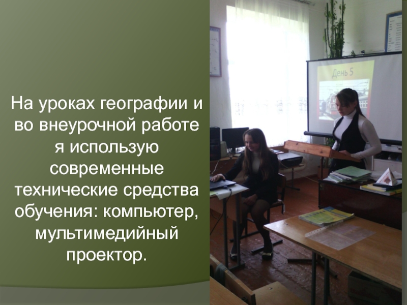 Слайд 13На уроках географии и во внеурочной работе я использую современные технические
