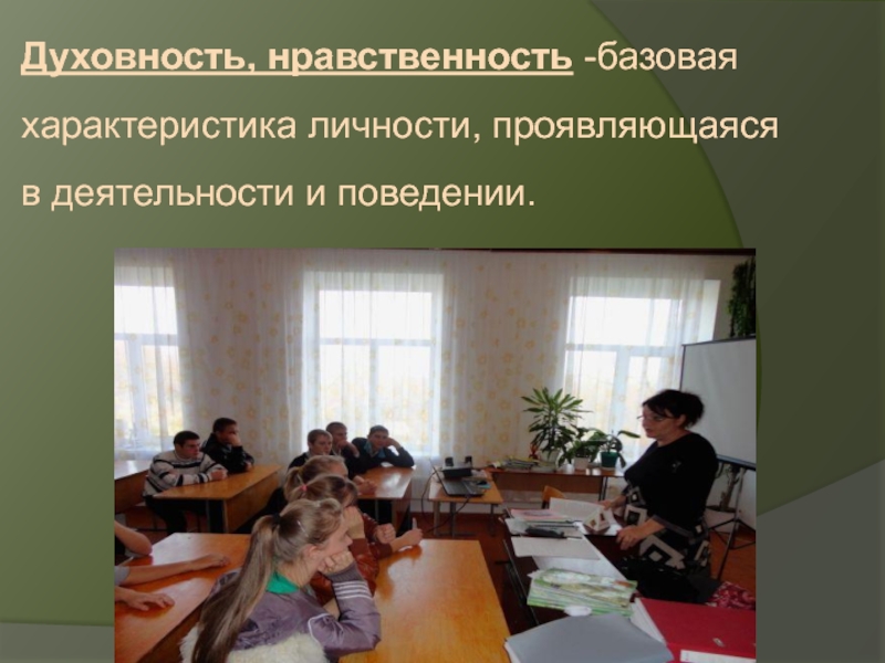 Слайд 6Духовность, нравственность -базовая характеристика личности, проявляющаяся в деятельности и поведении.
