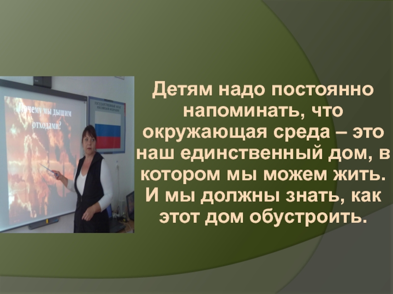 Слайд 15Детям надо постоянно напоминать, что окружающая среда – это наш единственный