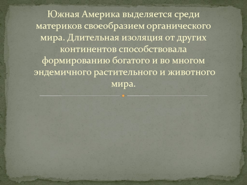 других континентов способствовала формированию богатого и во многом эндемичного растительного и животного мира.