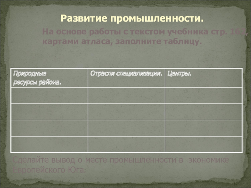 Сделайте вывод о месте промышленности в экономике Европейского Юга.