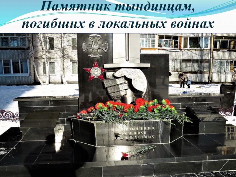 Слайд 16Памятник тындинцам, погибших в локальных войнах