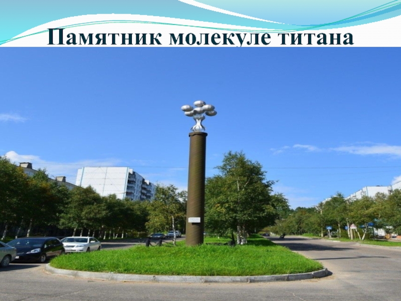 Памятник молекуле титанаУстановлен 1996 году, увенчан композицией в виде атомов молекулы титана. После начала добычи